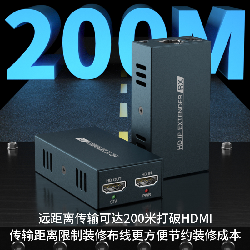 Product for HDMI network extender converter 200 meters HD network transfer line transmission 1080P crystal head video HD transmission 1080P resolution support POE power grid port to rj45 head