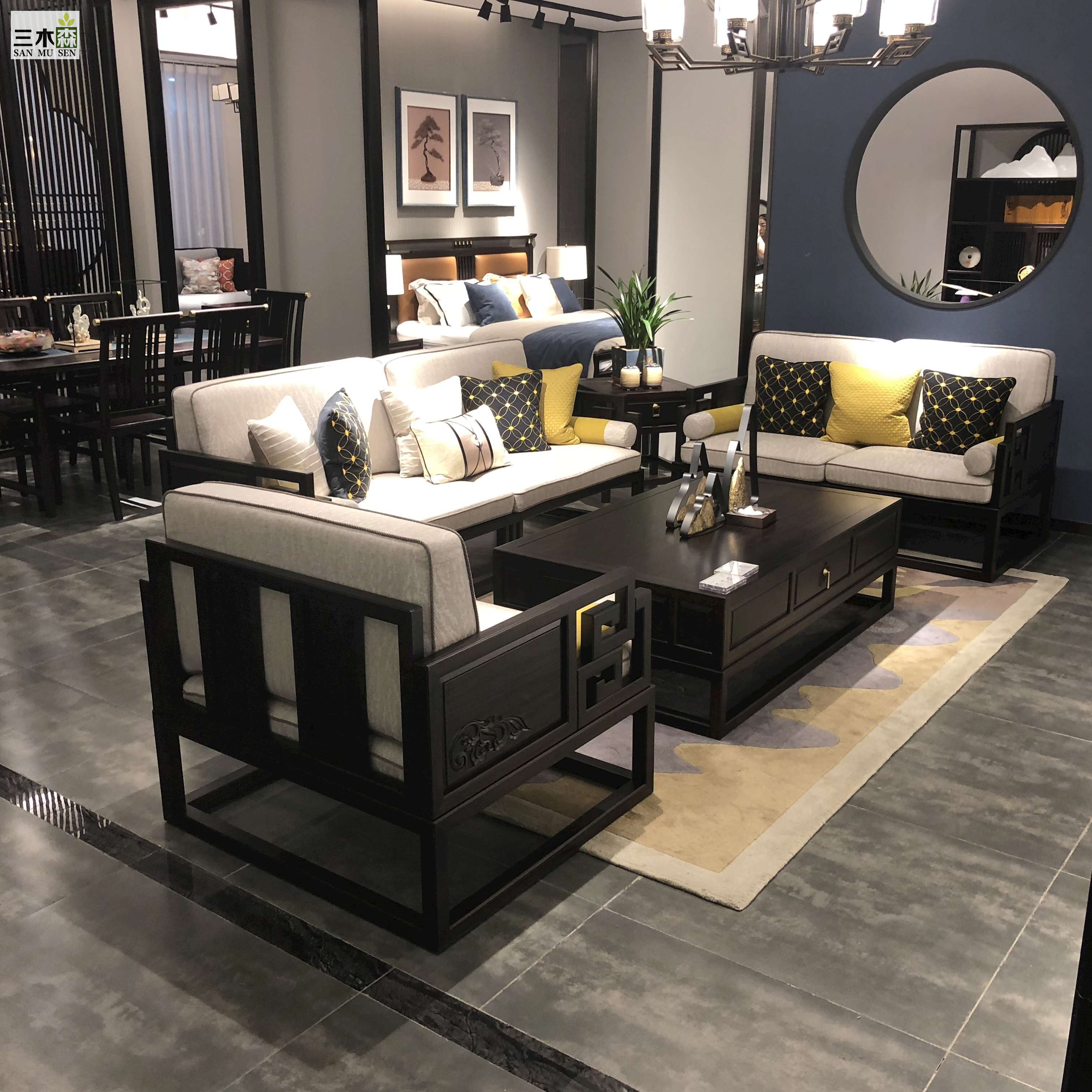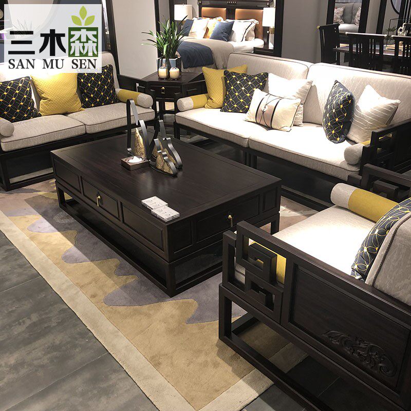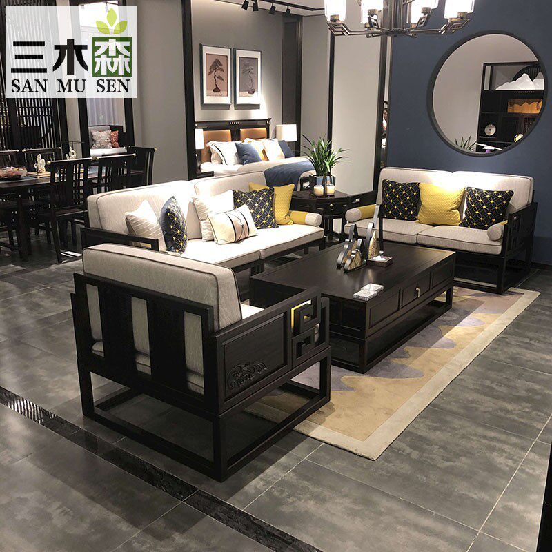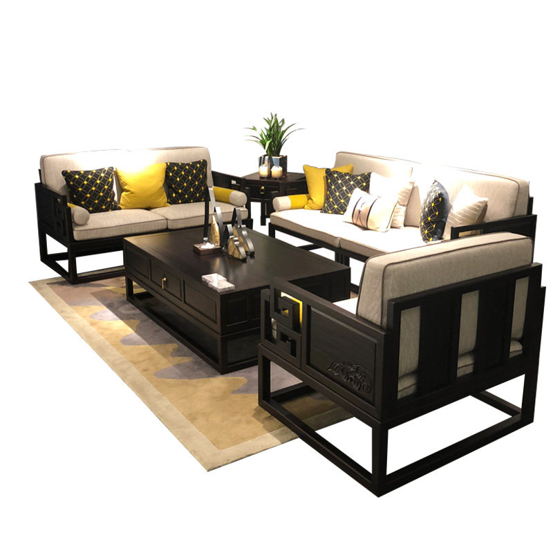 New Chinese solid wood sofa combined sample board room modern minimalist light lavish luxury boutique villa hotel furniture custom-made