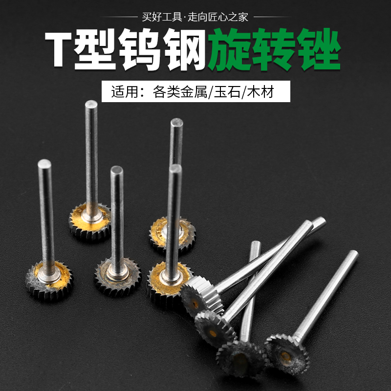 t shape hard alloy rotary filing tungsten steel grinding head notched knife grinding head metal milling cutter groove knife round electric grinding head