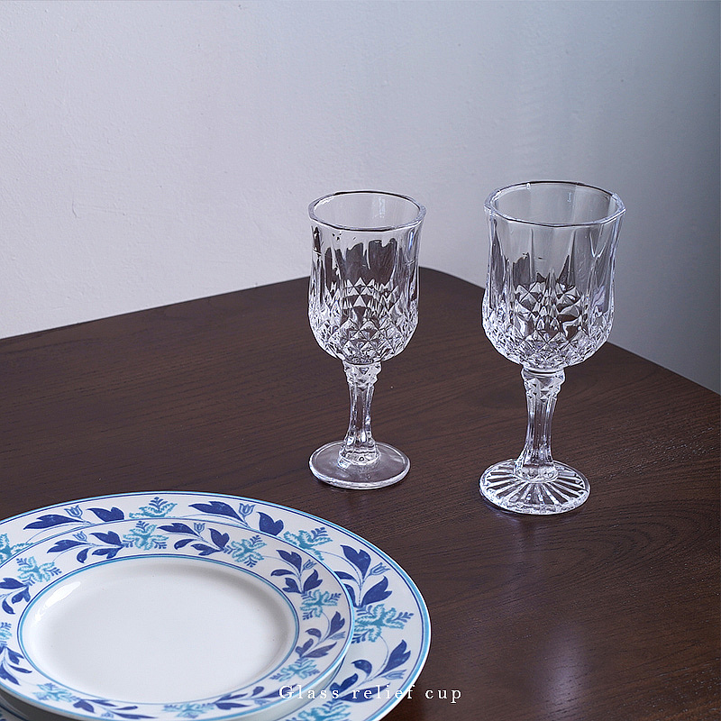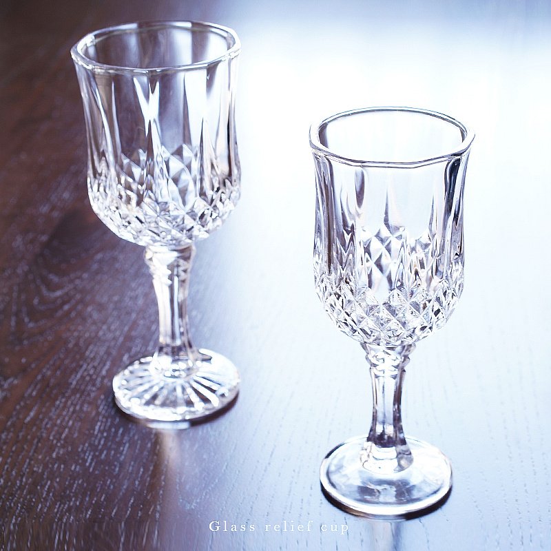 Relief High Foot Wine Glass Wine Glass Home Foreign Wine Champagne Red Wine Glass Retro Lead-free Transparent Wine Glass