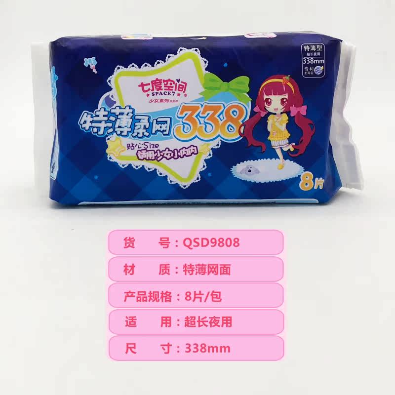 Seven degrees space nighttime sanitary cotton special girls silk cool dry mesh surface 338mm6 pack 48 pieces QSD9808