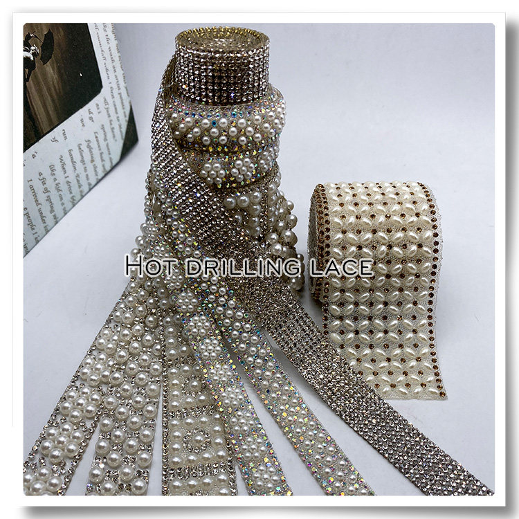 Handmade DIY hot diamond lace with bead-encrusted diamond decoration paste clothing accessories hand-stitched cloth cloth edge drill with jewelry