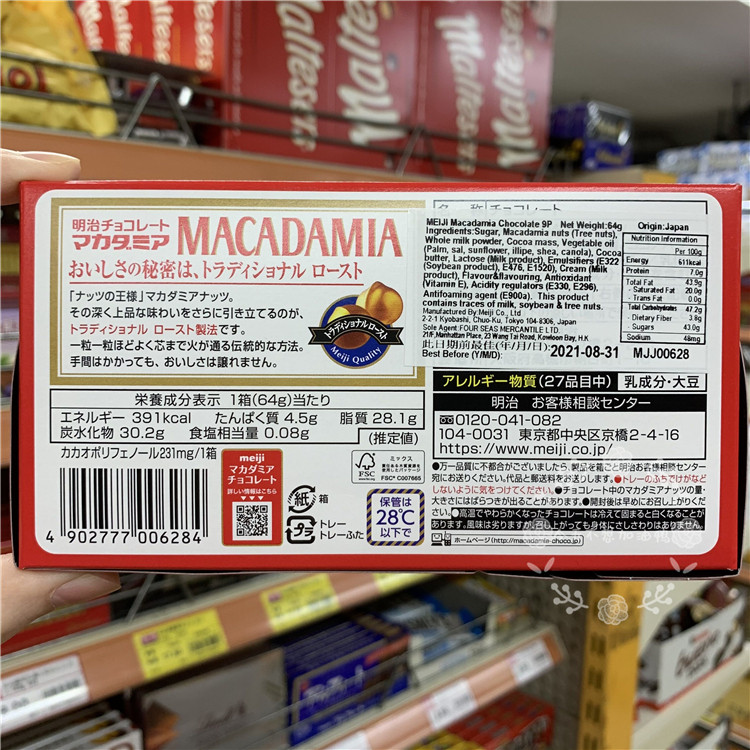 Hong Kong Japan Meiji Mecca Nut Chocolate Sandwich Chocolate Boxed Casual Snacks 64g