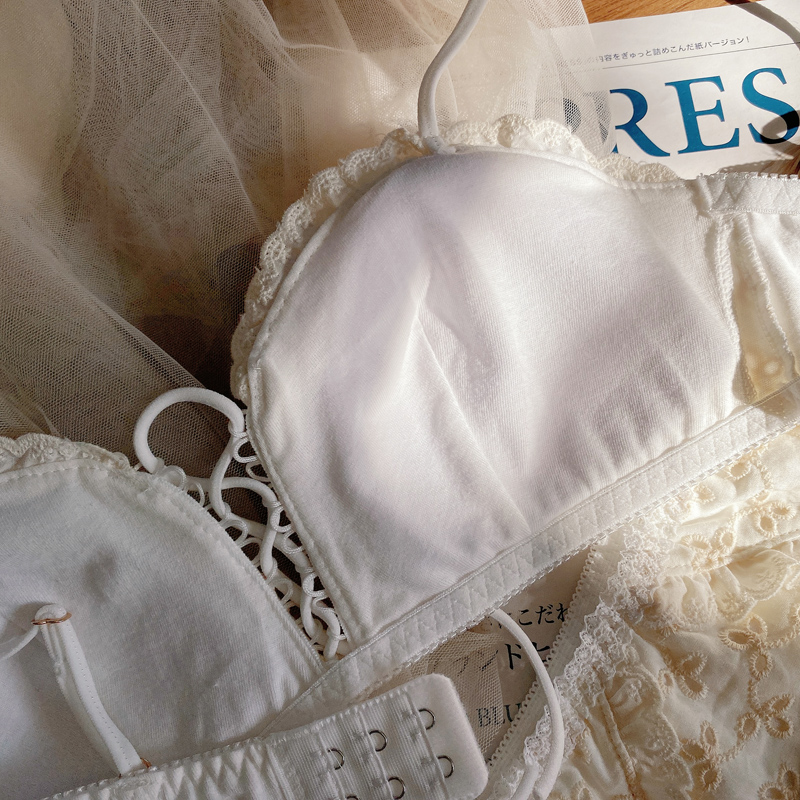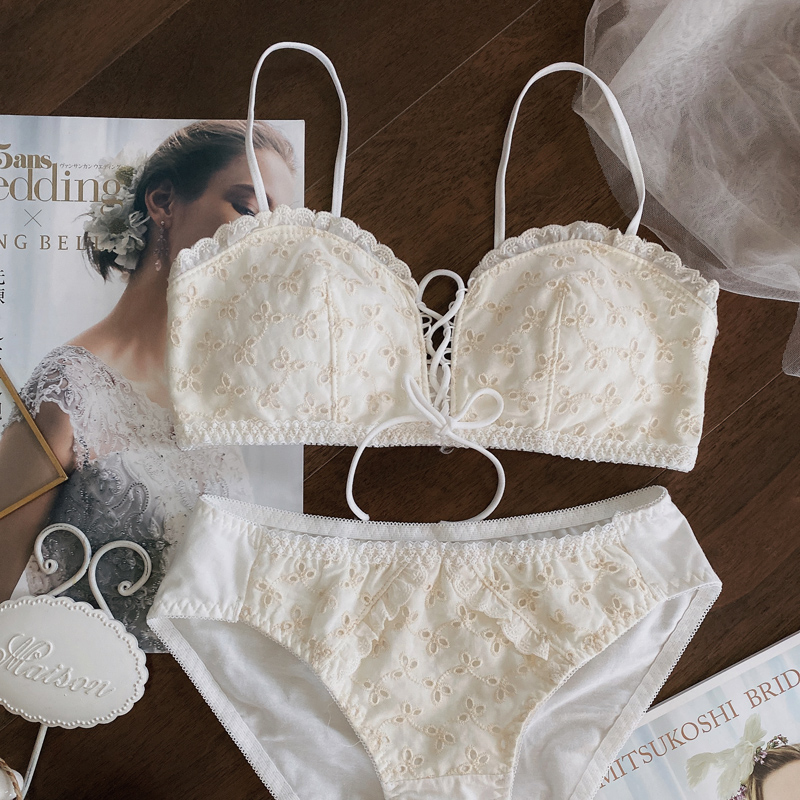 Peach Honey Lace Girl Lingerie Suit Sweet Water Soluble Flowers Embroidered Thin Cups Sexy Underwear Students No Steel Ring
