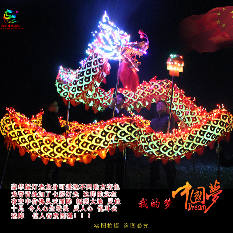 New national standard nine-section gold-hot dragon lantern dragon dance lion dance props set of LED luminous lighting dragon head dragon dance costume