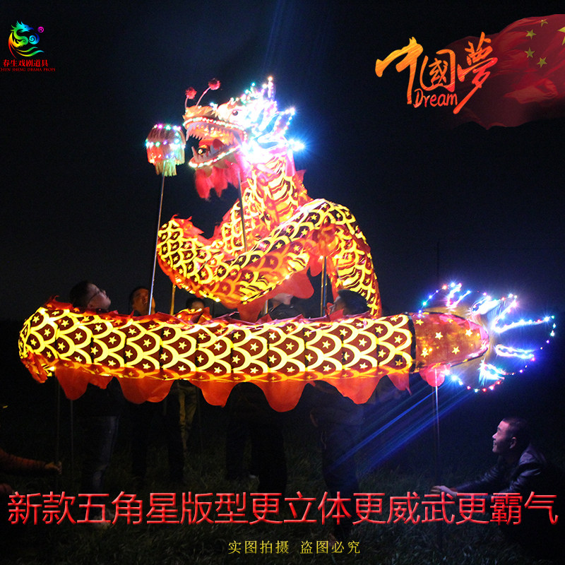 The new national standard nine-section bronzing dragon lantern dance dragon and lion dance props complete set of LED luminous lights faucet dragon dance costume