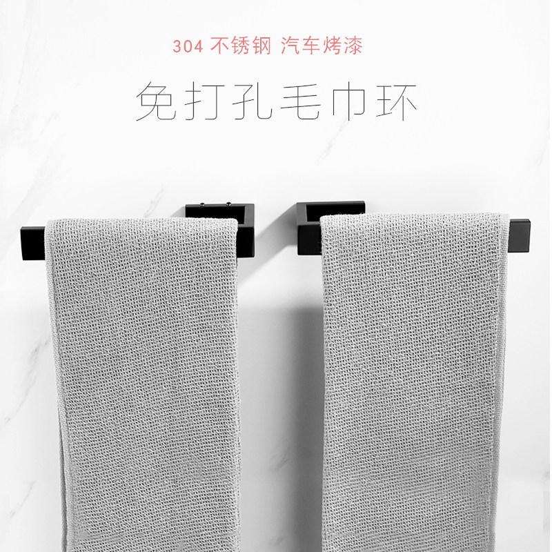 Black towel ring 304 stainless steel thickened short hand towel ring free punching bathroom towel rack Nordic