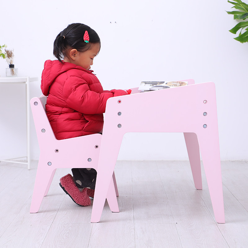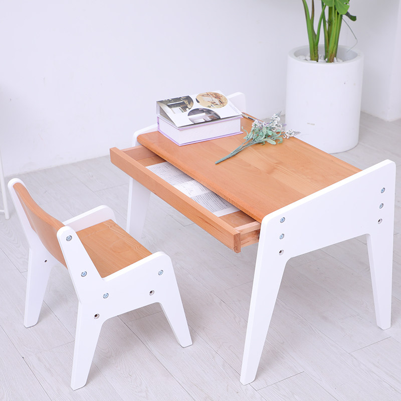 Children's table and chair Solid wood set can lift kindergarten baby game table Learning desk and chair Small table Household