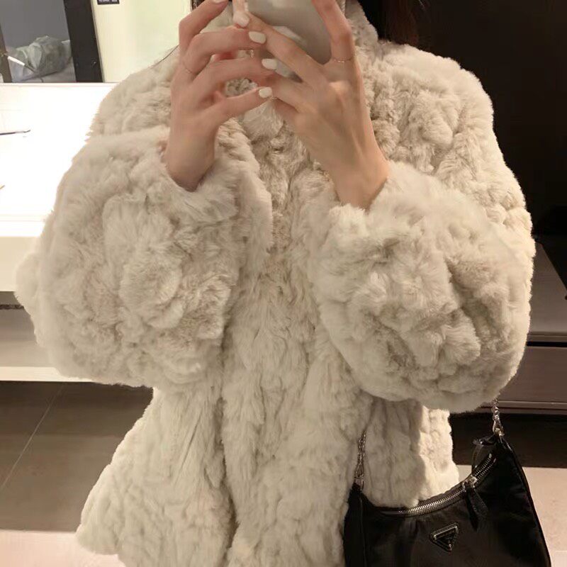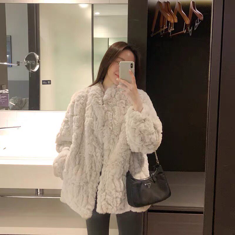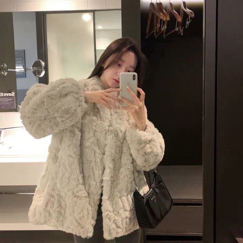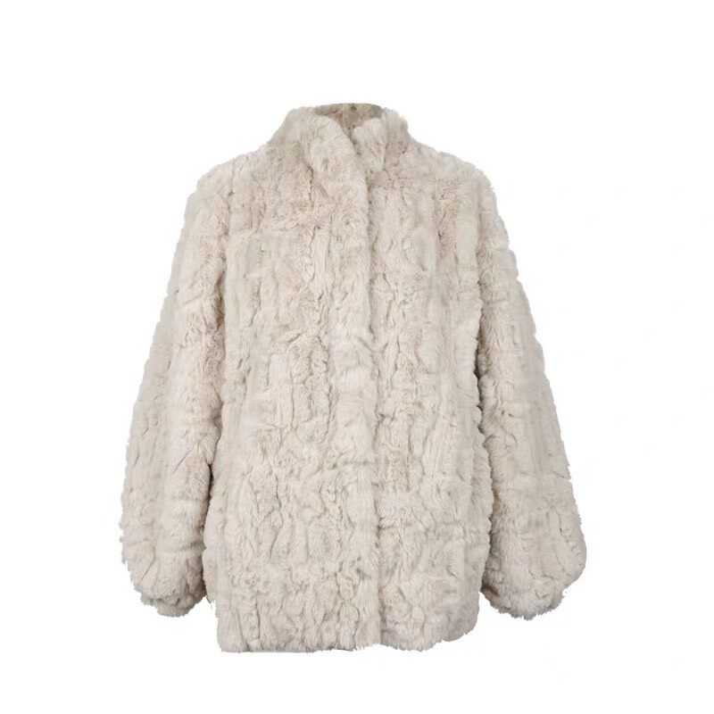 2021 autumn winter new lamb wool jacket with long version thickened loose imitation rabbit fur plush fur jacket big coat woman