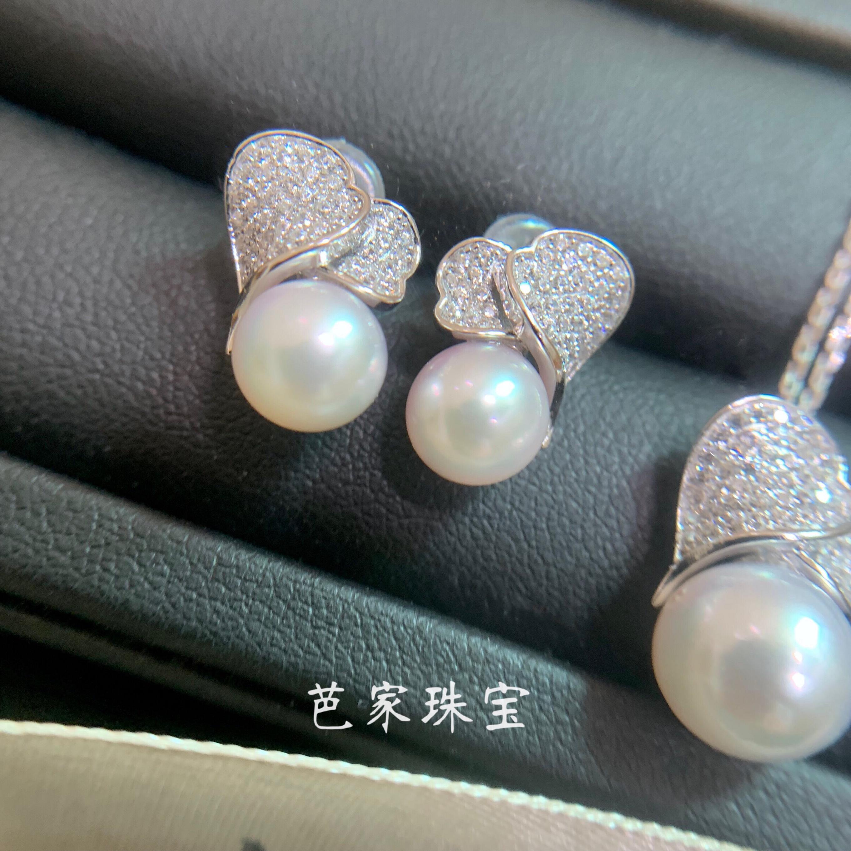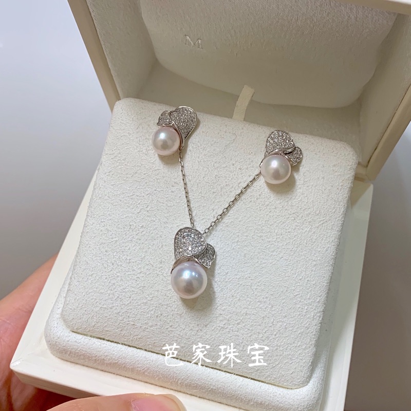 Bajia jewelry M with Paris rose Japanese akoya sea beads 925 sterling silver ear needle pendant necklace