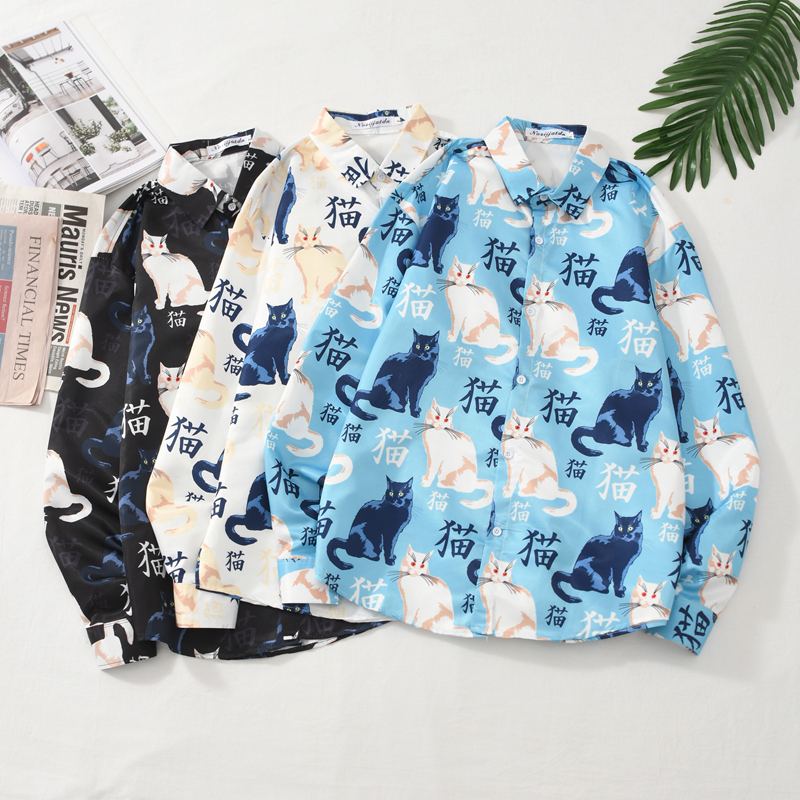 White (Nuo A601-cat) long-sleeved shirt blue (Nuo A601-cat) long-sleeved shirt black (Nuo A601-cat) long-sleeved shirt white (Nuo A603-flower bird) long-sleeved lining