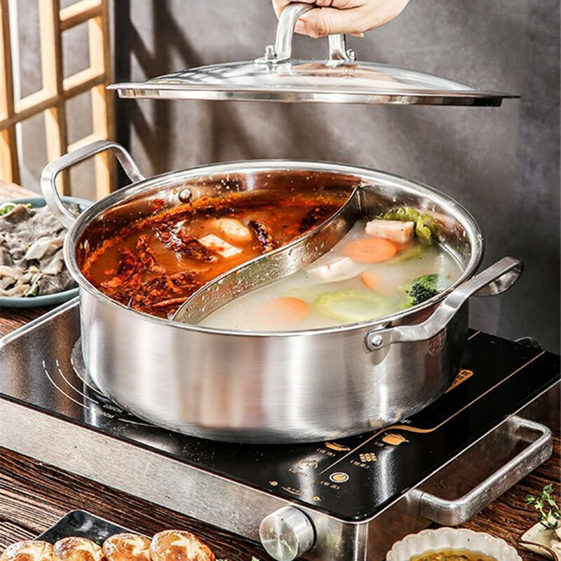 Thickened 304 stainless steel mandarin duck pot Induction cooker special hot pot pot Household electric hot pot hot pot pot Mandarin duck pot pot
