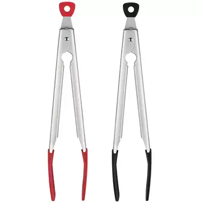(304 upgrade) Nordic Red★Silica gel, gadgets and stable★High temperature resistance (minus 3 yuan) 111 (304) two-piece food clip all stainless steel 12 inch (choose me more cost-effective) (