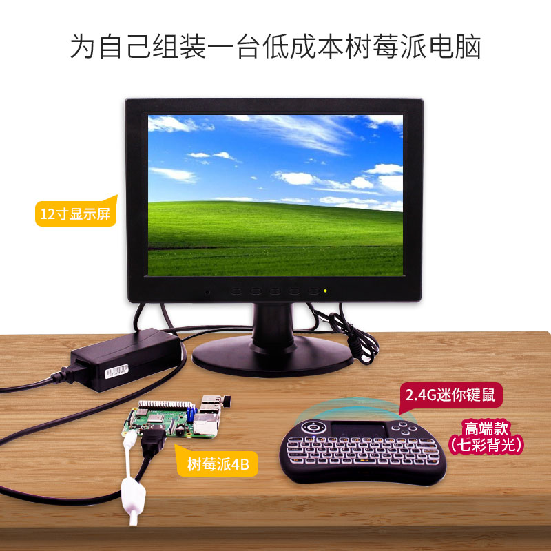 Yabo smart Raspberry Pi 4 generation 4B LCD screen computer dustproof kit 12 inch LCD development board display