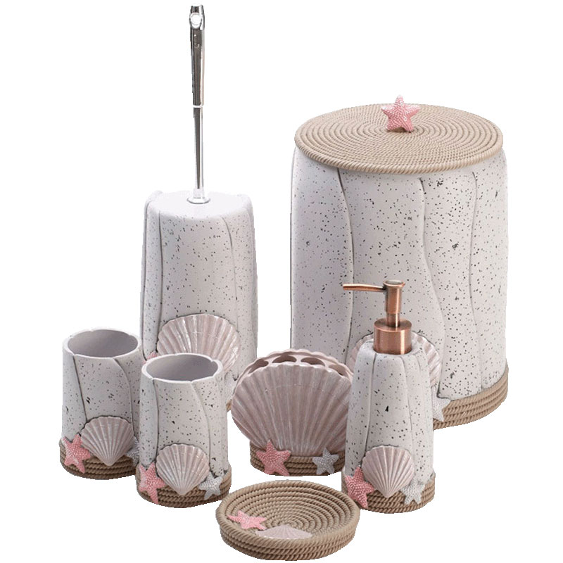 Resin washing suit Wash Suit Liquid Bottle Large Barrel Trash Cans Beach Shells Bathroom 5 pieces Bathroom Decoration Kit