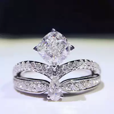 PT950 platinum inlaid import mo sang shi crown ring fang zhen zuan solves the square nv jie 2 karat wedding ring