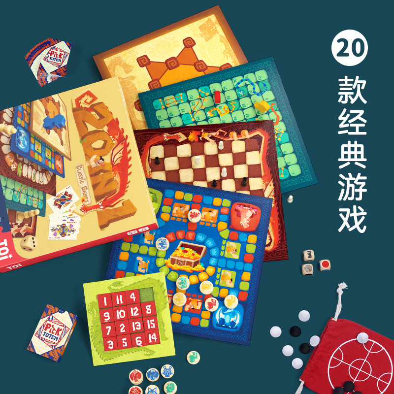 TOI 20-in-1 Dragon and Treasure Classic Game Chess Puzzle Board Game Set Combination of Multiple Plays Thinking Cognition