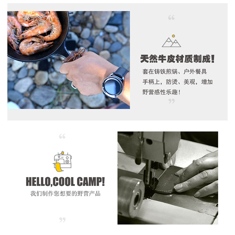 Outdoor Cast Iron Frying Pan Bull Leather Handle Sleeve Folded Wild Camp Bowl Handle Cover Genuine Leather Anti-Scalding Heat Insulation Pan-Taobao