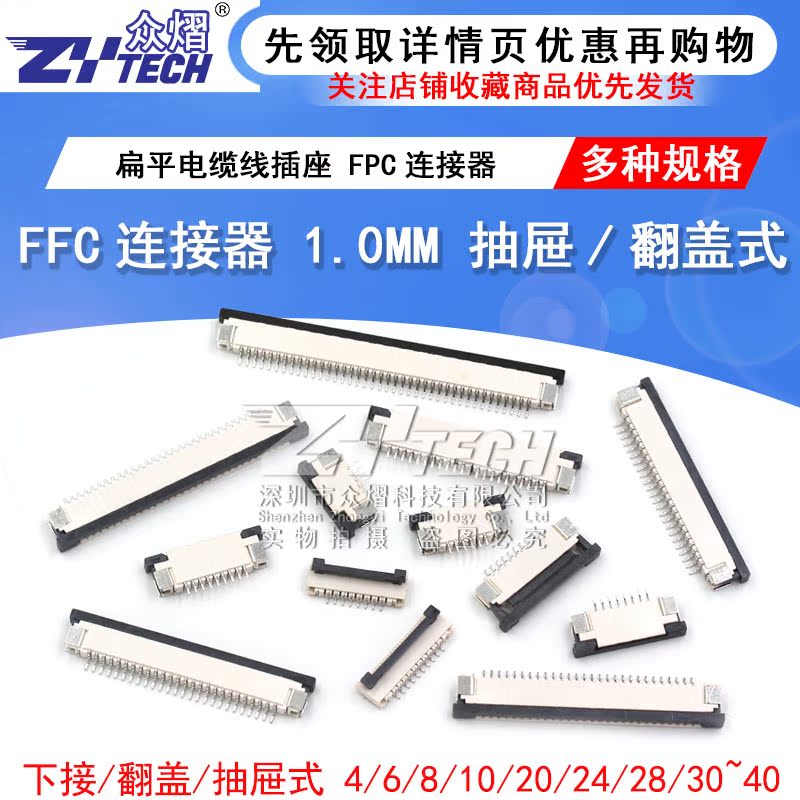 FFC FPC flat cable socket 1 0MM connector Down drawer flip cover type 6 8 16~40P