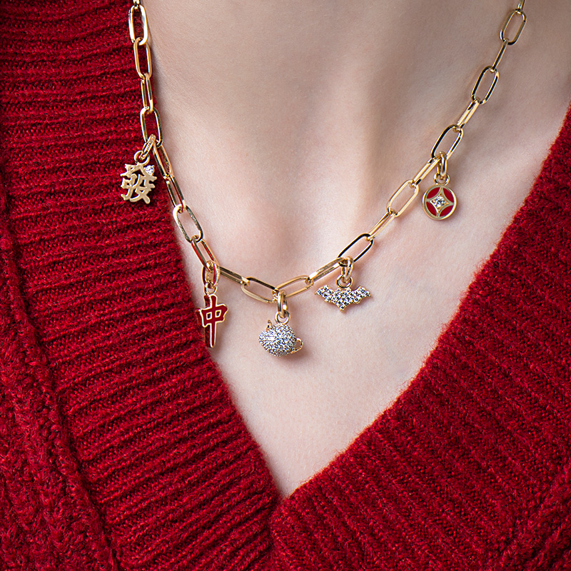 Fortune pendant lucky coin pendant lucky horseshoe pendant small bat pendant cute mouse pendant red Middle pendant Crystal Ball Pendant