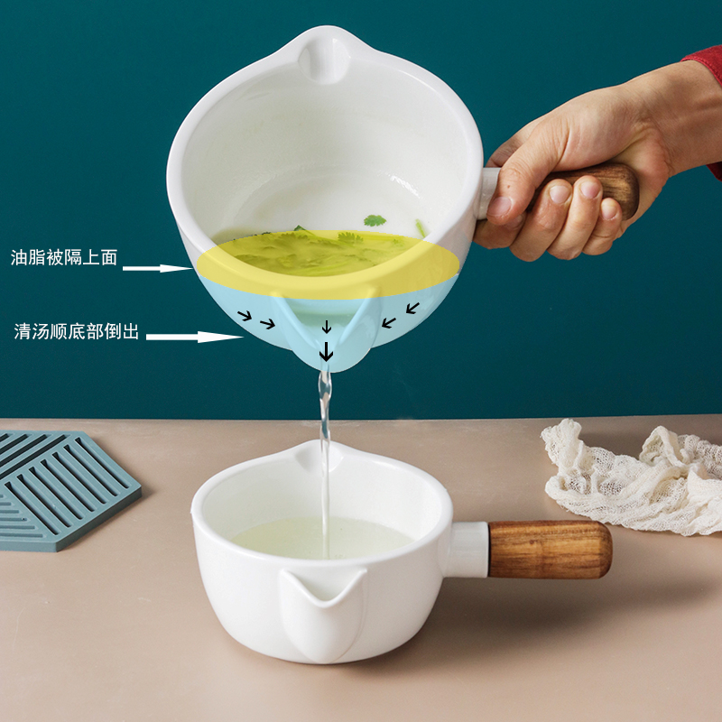 Large Capacity Ceramic Oil Soup Separator Filter Oil Bowl Moon pregnant woman Divine Instrumental Home Stew Soup Skimming Oil Drain Bowl Clear Soup