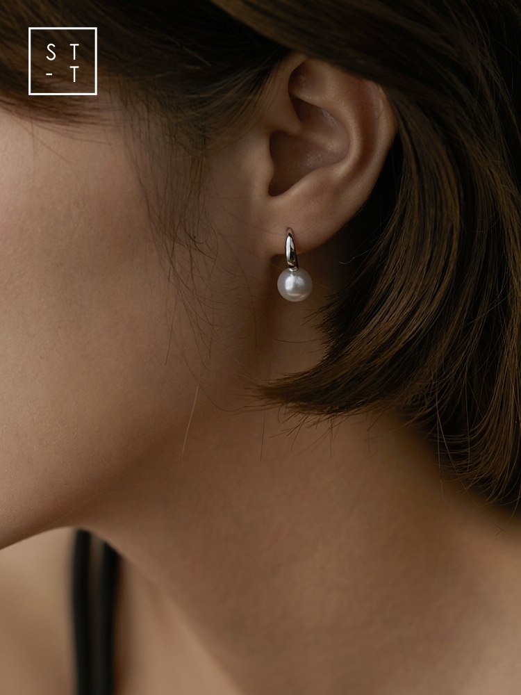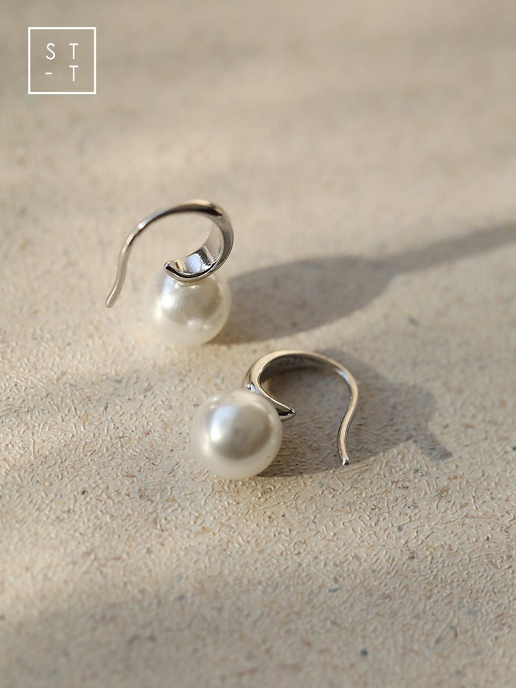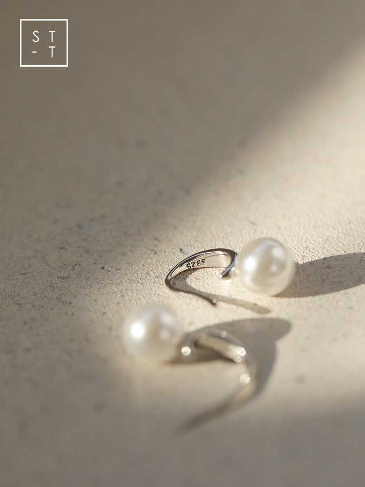 Mrs. Shen S925 pure silver Japan-ROK brief synthetic pearl earrings female students little fresher art fashion ear ornaments