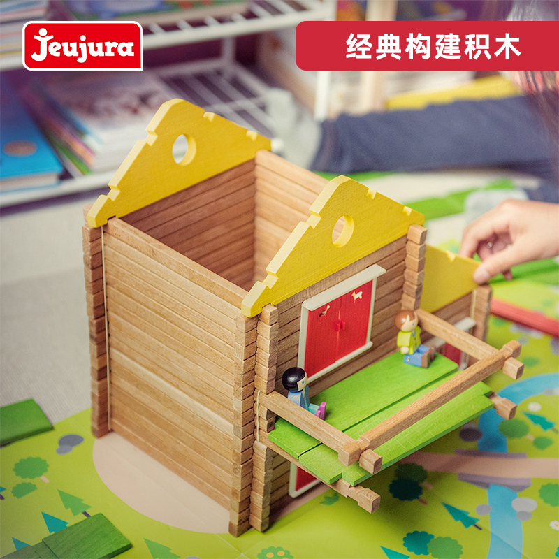 French Jeujura building block cottage children puzzle toy building blocks assembled house solid wood parquet 5-year-old gift