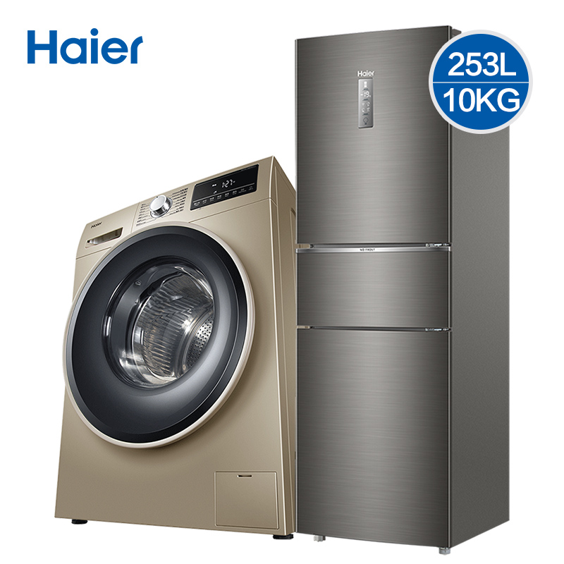 Haier refrigerator washing machine package 253 liters three-door frost-free frequency conversion first-class energy efficiency 10kg automatic drum