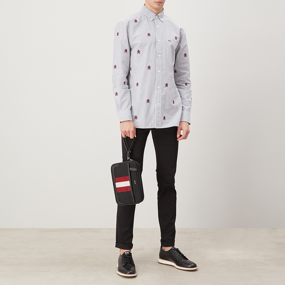 Bally Bali LOGO Striped Hand Grab Bag Men's Bag Handbags Sails Bag Genuine Leather Men's Bag