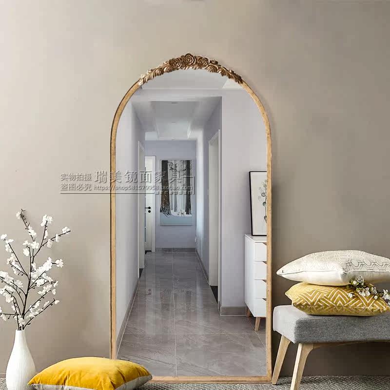 European-style cloakroom full-body mirror hall Xuanguan big mirror full-body mirror ancient light luxury clothing store audition hanging mirror custom