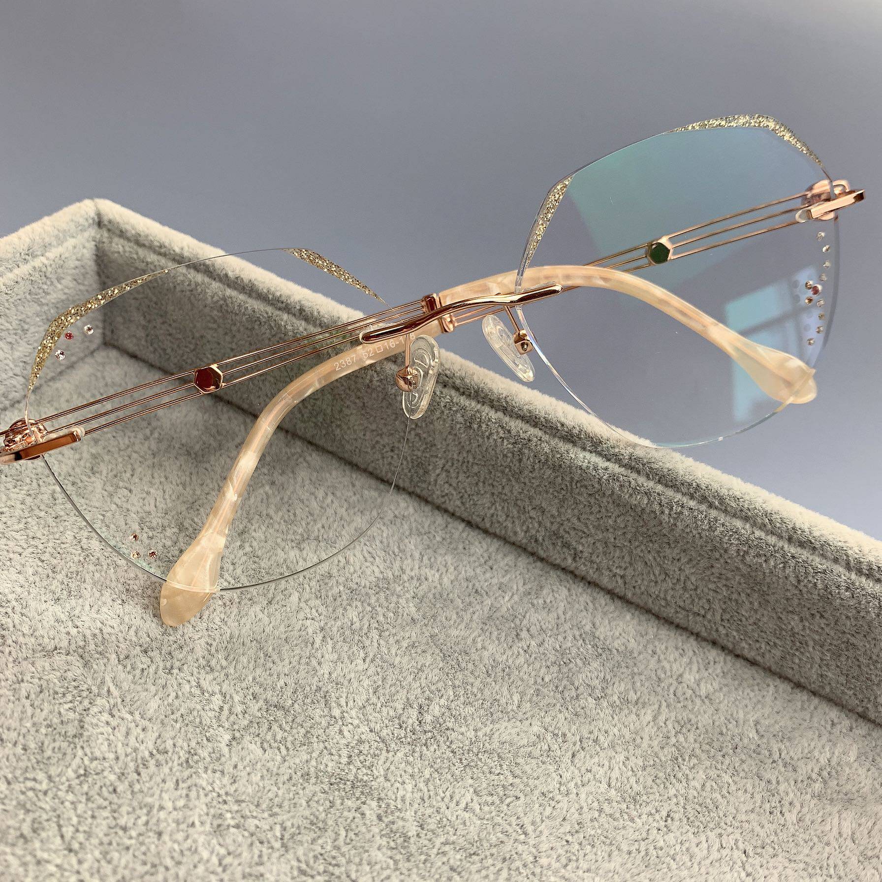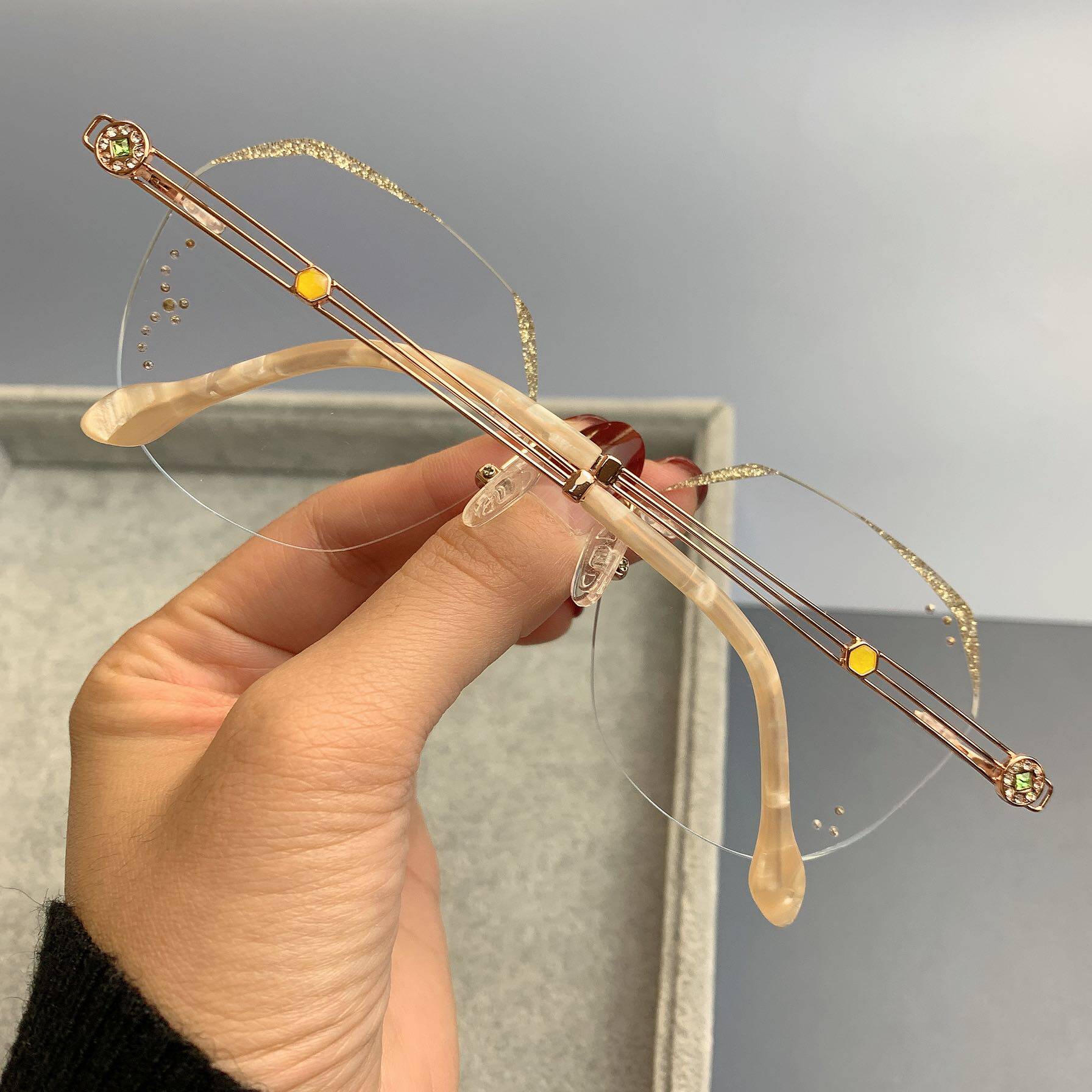 No-frame glasses female diamond cut myopia beauty glasses big face fashion embellishing face type anti-blue light radiation glasses