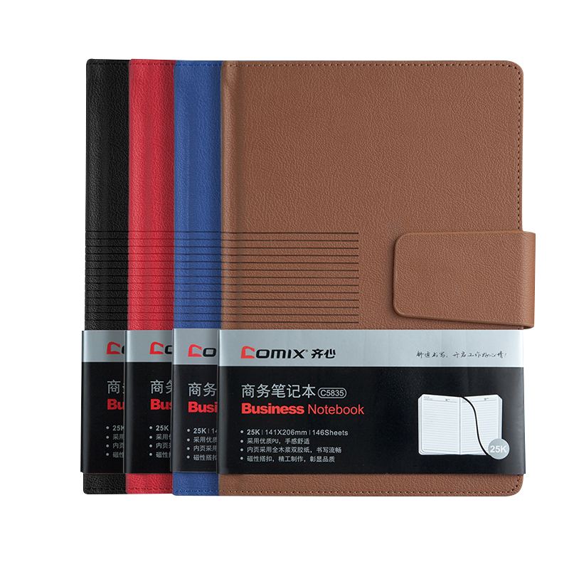 Qi Xin magnetic buckle leather notebook loose-leaf book 5K black business leather B5 conference notepad Office supplies Diary Hand book notebook stationery thickened notepad C5835