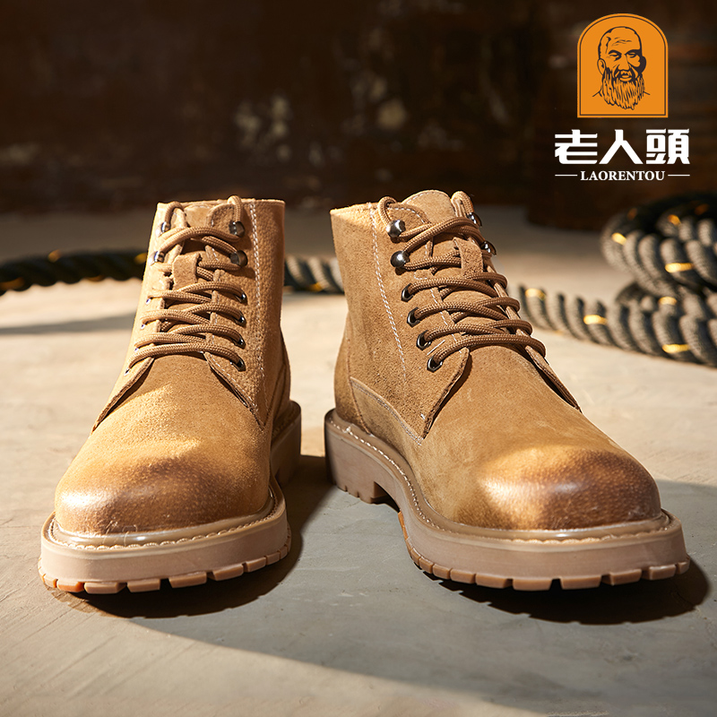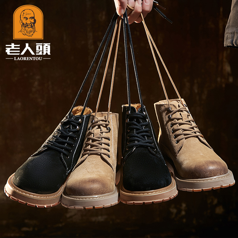 Old man's head Martin boots male 2022 spring thick bottom abrasion resistant high cylinder tooling boot Rhubarb Boots Genuine Leather Short Boots