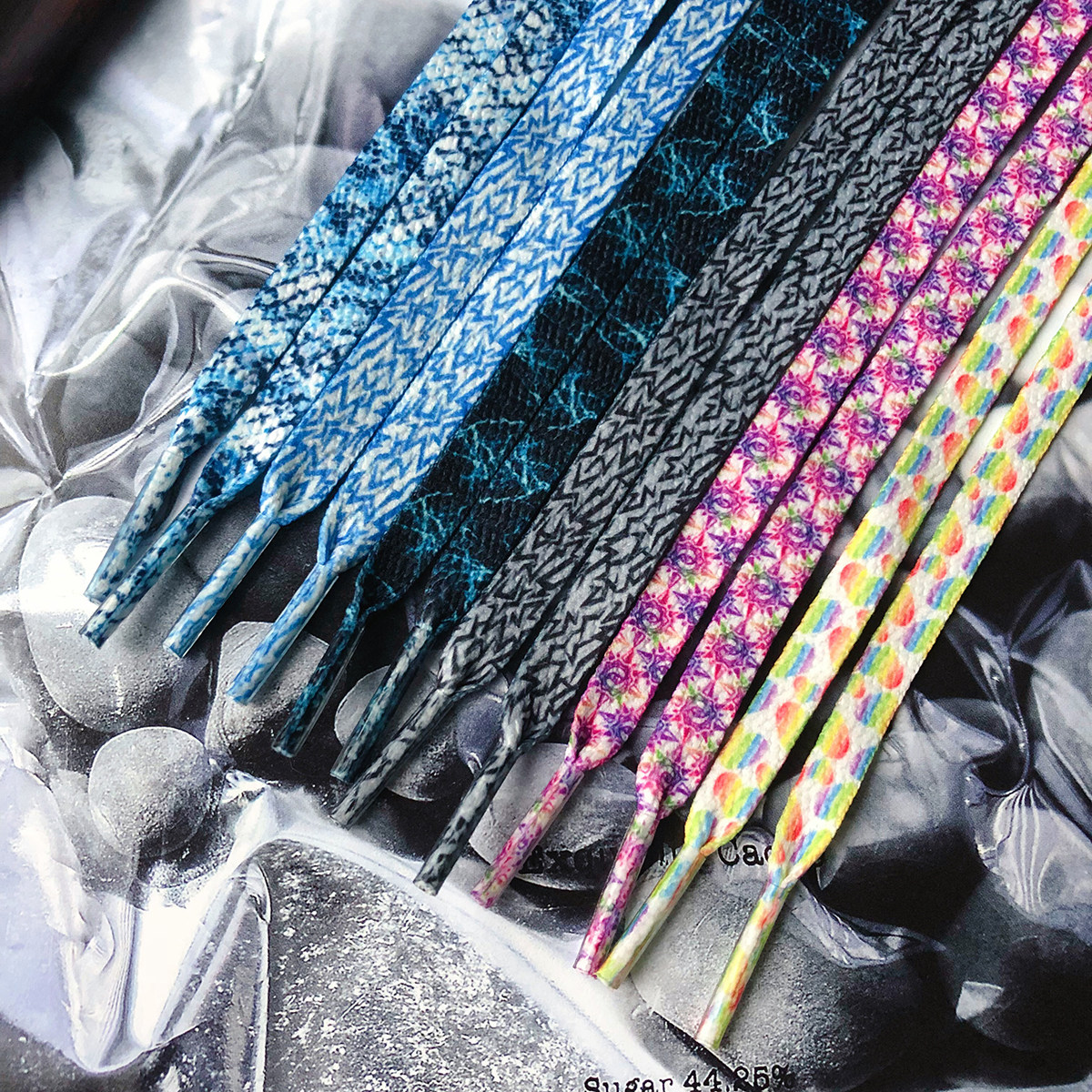 Rainbow Heart Laces 140cm Purple Soul Eye 160cm Purple Soul Eye 180cm Blue Snake Laces 160cm Blue Snake Laces 180cm Black Blue Ice Crack Shoes
