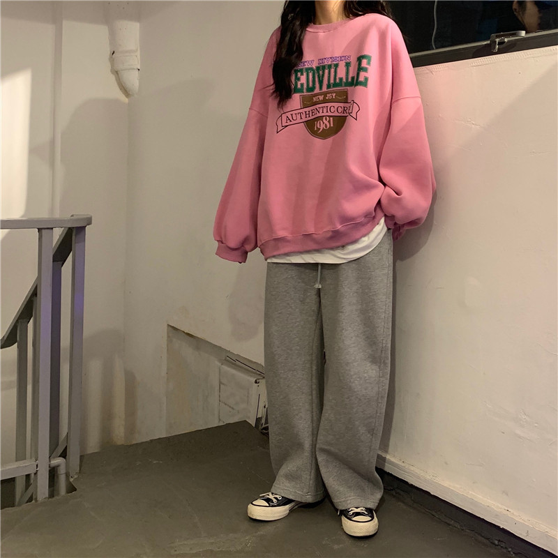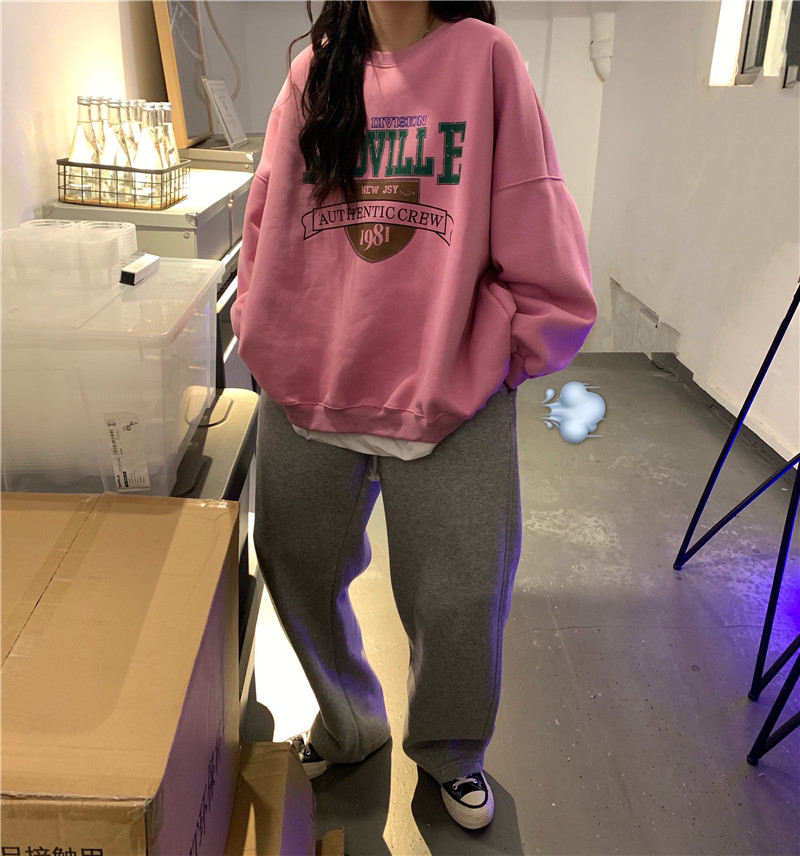 Sweatshirt with thickened female autumn and winter new Korean version 100 Lap Fashion Round Collar Coat and Tide Student Loose Blouse