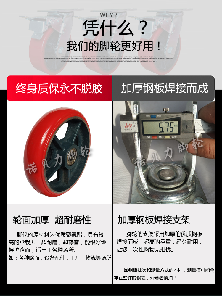 Castwheel wheel industrial wheel heavy wheel plate wheel with brake iron core polyurethane 4 56 inches