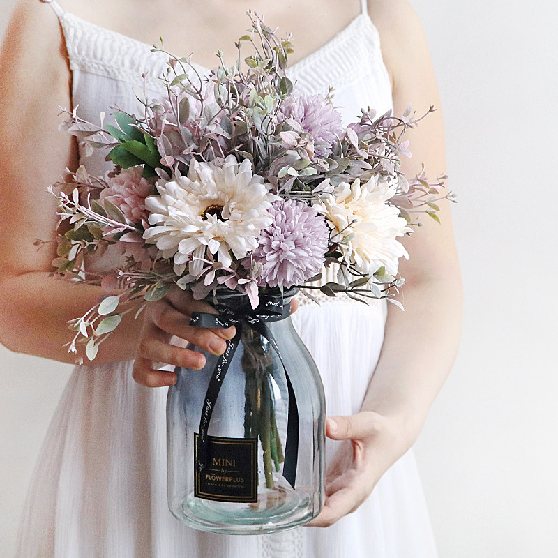 Living Room Dining Room Table Flower and flower Vase Art Vase Large Number Pendulum Fittings Living-room Flower Arrangement Glass Transparent Nordic Simulation Fake Flowers