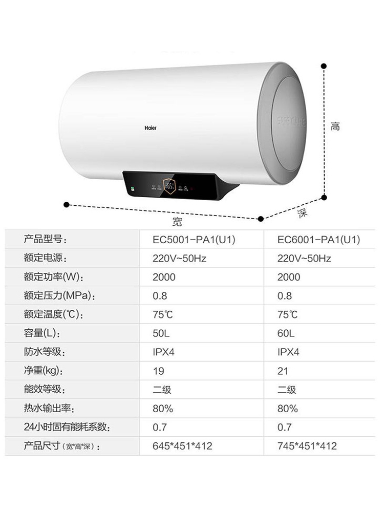 Haier Electric Water Heater 50 60 Liter Home Rental Makeup Room Small Water Storage Small Size Energy Saving Speed Heat