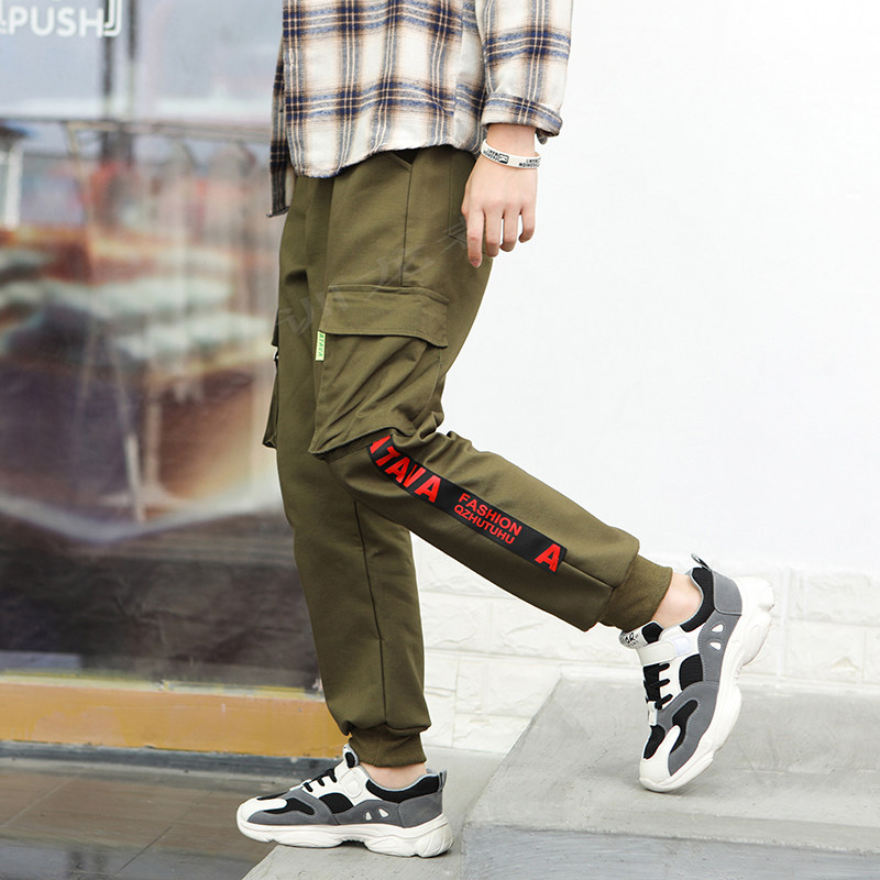 Winter boy's pure cotton overalls plus velvet thickened to keep warm middle and big children's all-in-one velvet Korean casual pants trousers