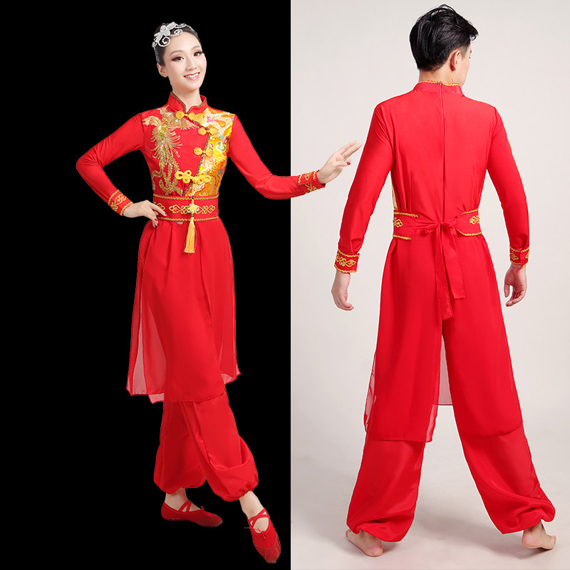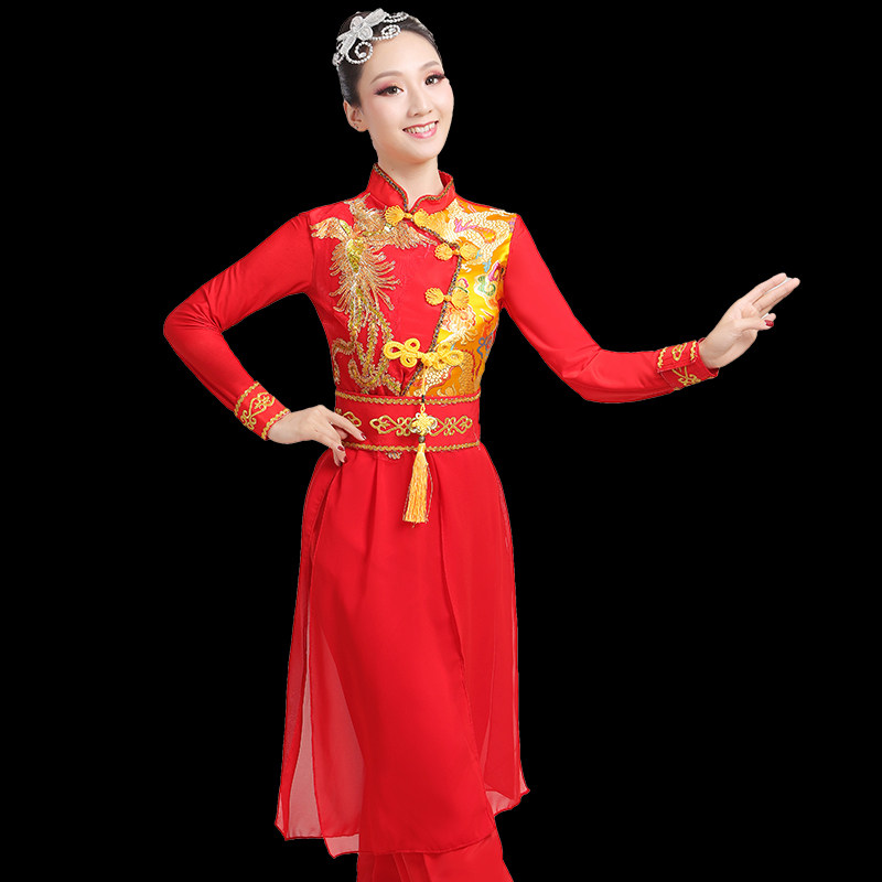 Drumming costume performance costume female Chinese style red gong drum team festive twist Yangko water drum performance costume dragon dance lion dance