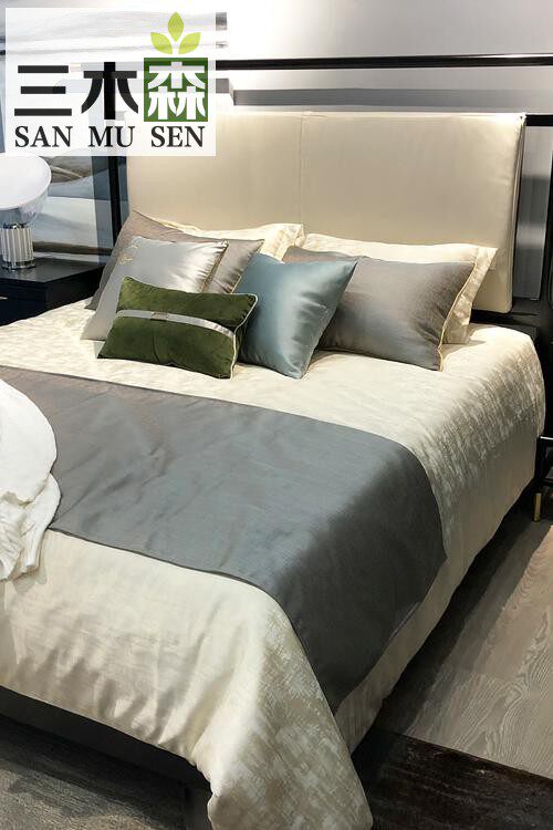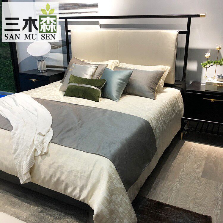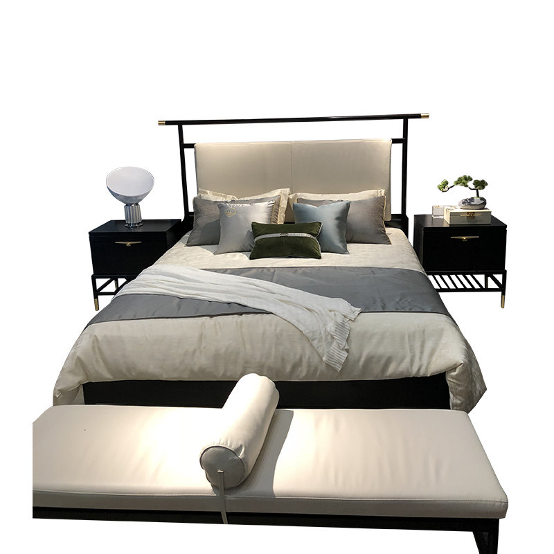 New Chinese solid wood bed Bedroom Double beds Modern minimalist Classical Fabric Bed size Family hotel furniture Customized
