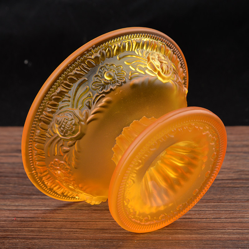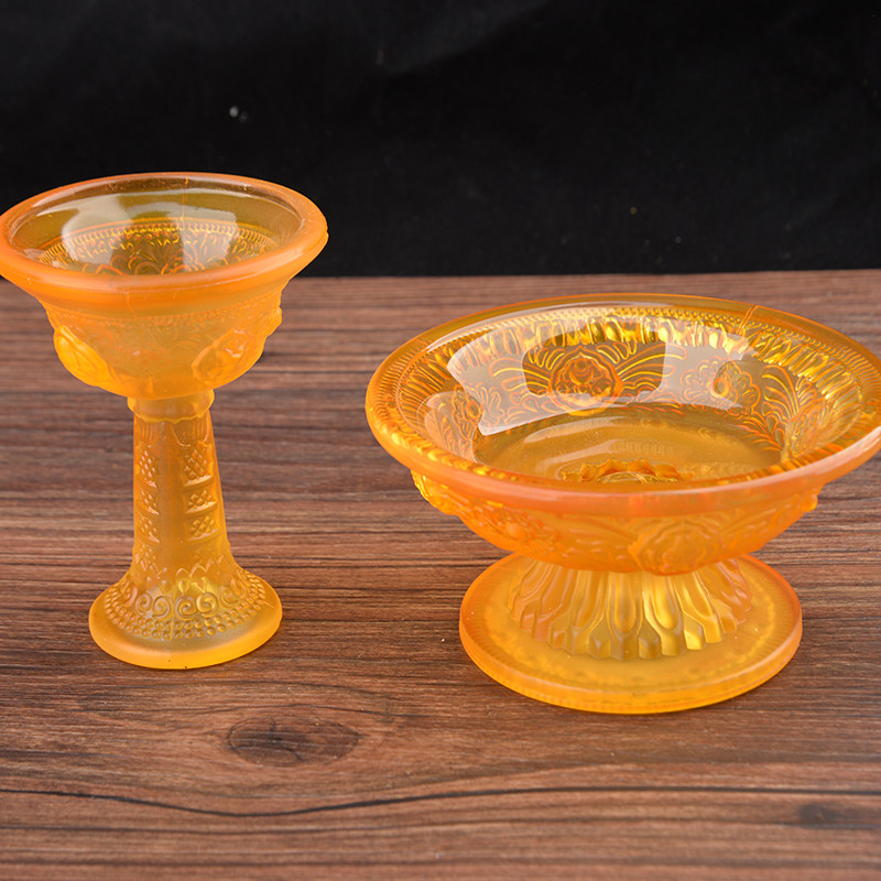 Tibetan Buddhist utensils Bulk hair Crystal glass eight auspicious cups for cups Tantric utensils Yellow