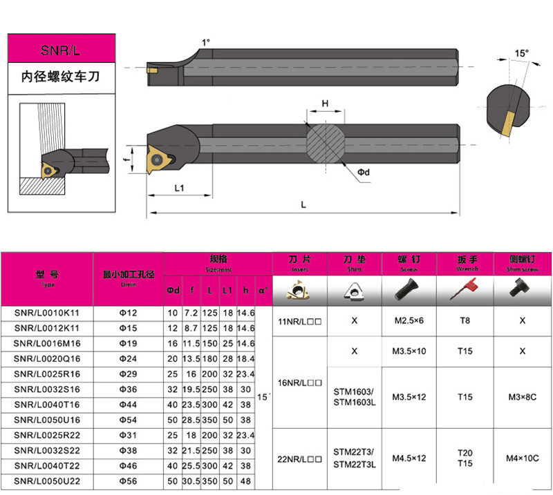 Internal thread turning tool CNC wire pick rod SNR0008K08 12M11 SNR0016Q16 20R16 25S