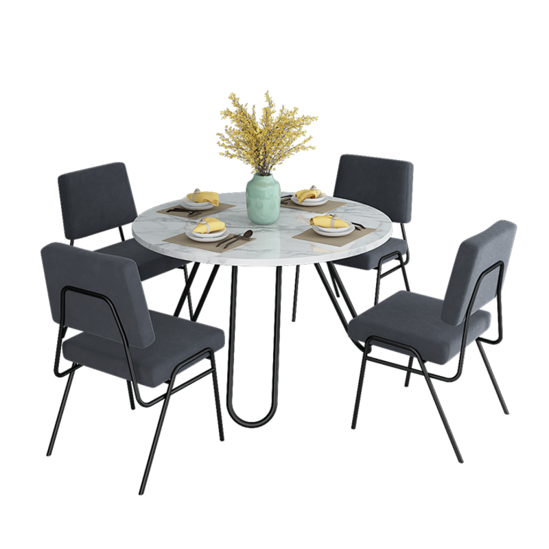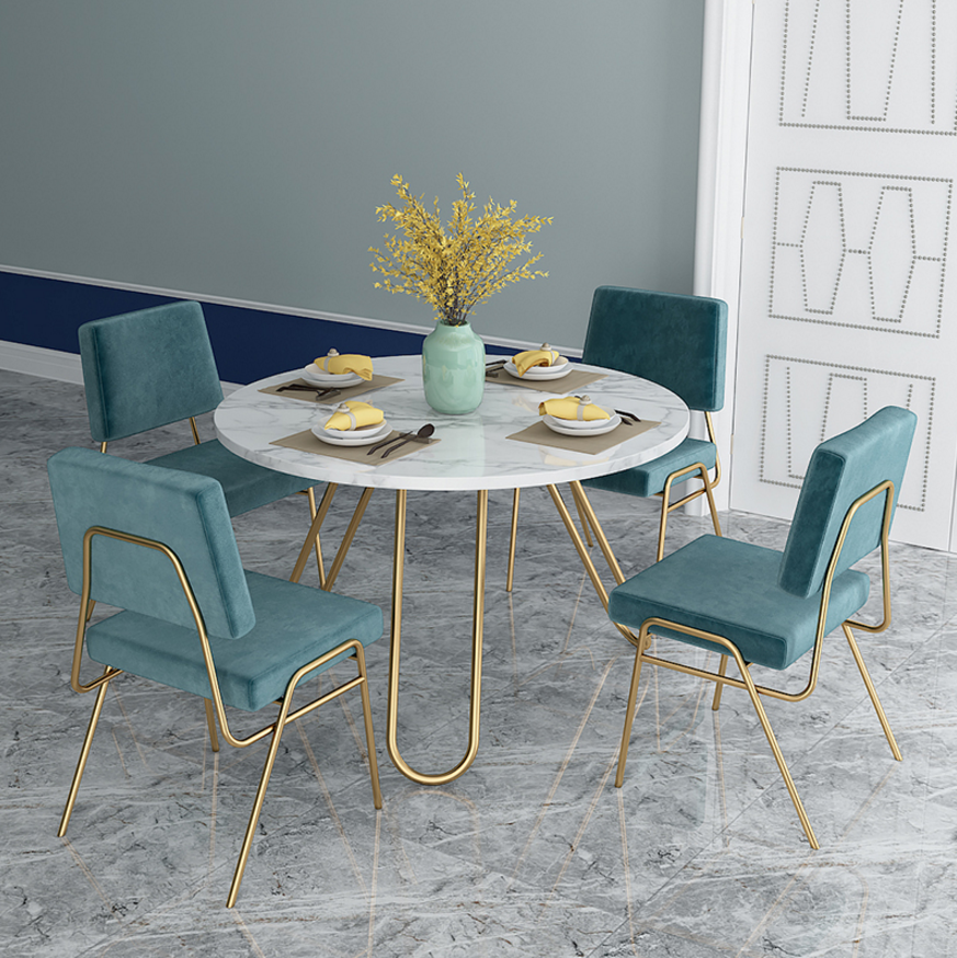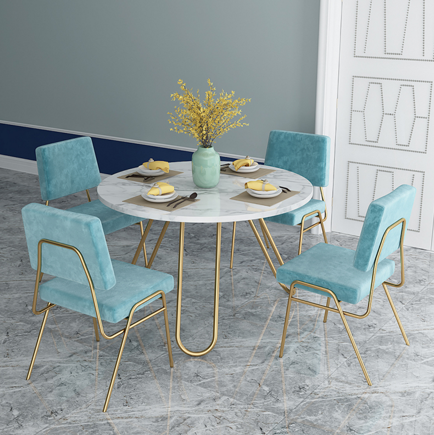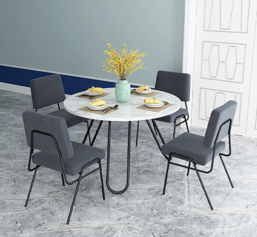 Nordic slate round dining table and chair combination post-modern small-sized household Hong Kong-style light luxury iron art dining table for 6 people