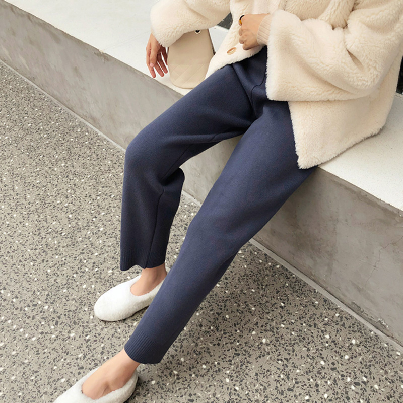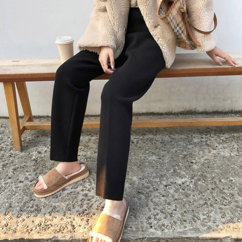 Grandma pants woman 2022 spring autumn loose thickened wide leg high waist casual long pants slim wool knitted pants straight drum pants