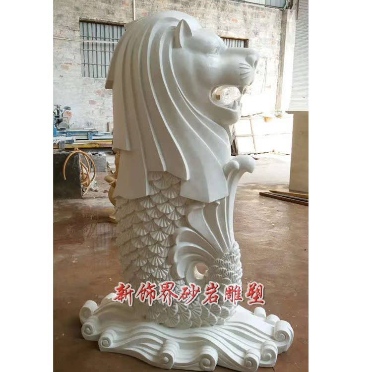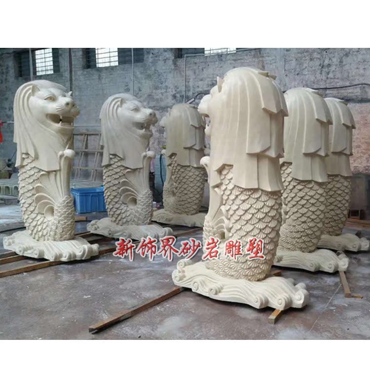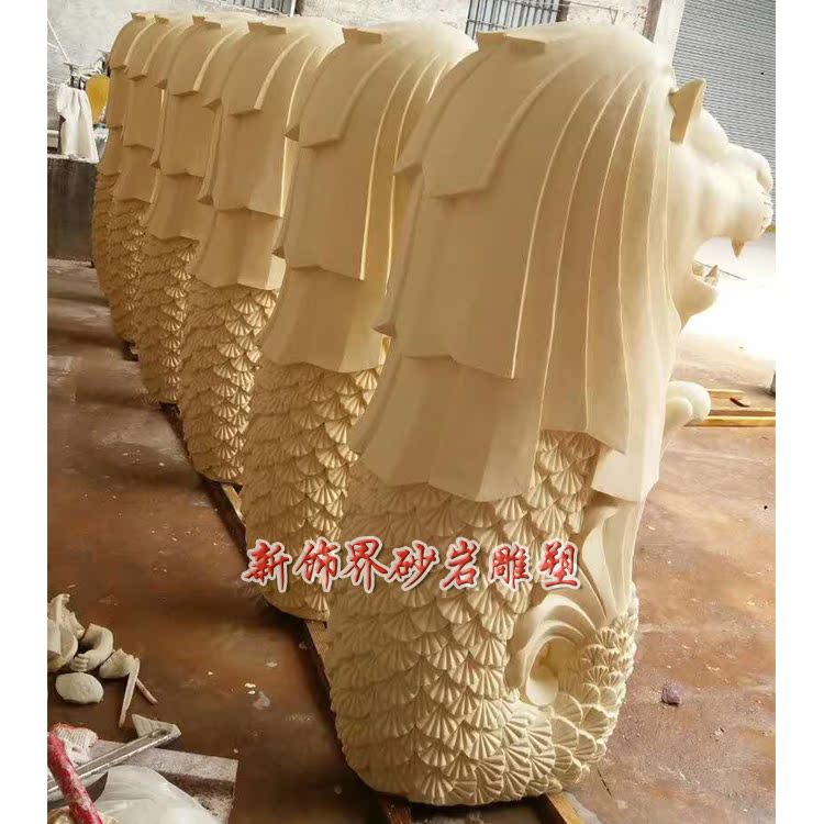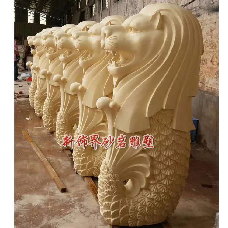 New Decoration World Sandstone Glass Fiber Sculpture Hotel Garden Villa Unit Community Outdoor Lion Body Fish Tail Lion Water Spray