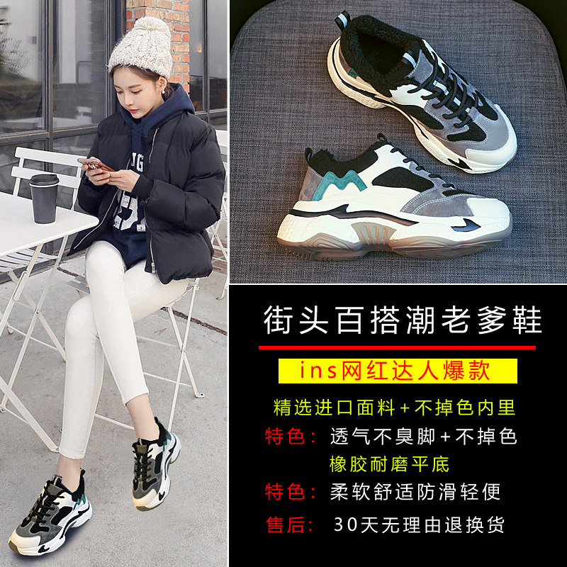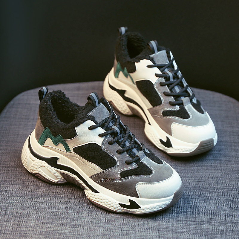 Daddy shoes and female in thickening 2020 new autumn and winter black tide net red - fired - line sports color piece