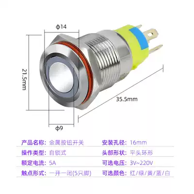 16mm metal button switch Self-locking ring amplifier with light start and stop button 12v 24v 220v