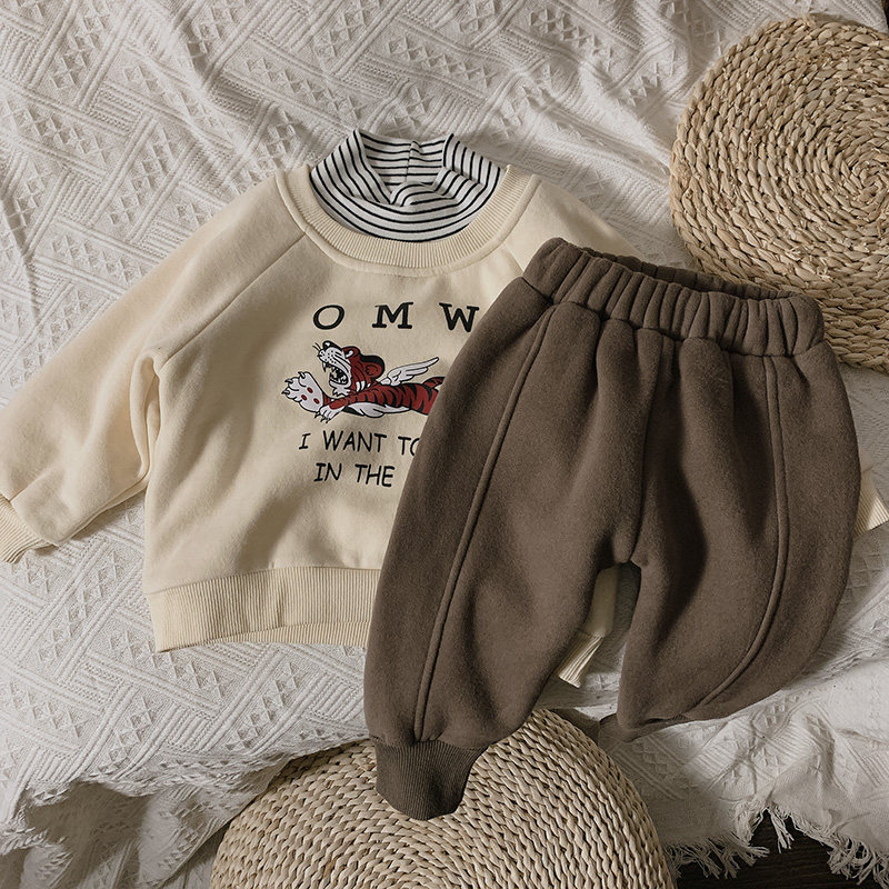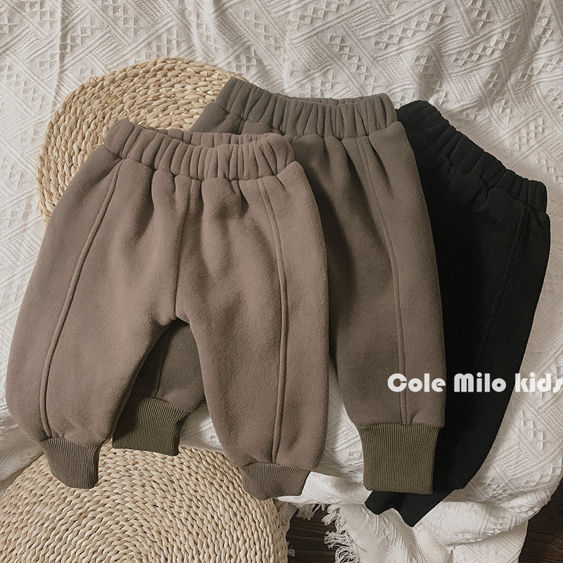 Baby trousers plus velvet boys pants autumn and winter retro girls casual sports pants wear Korean Ocean