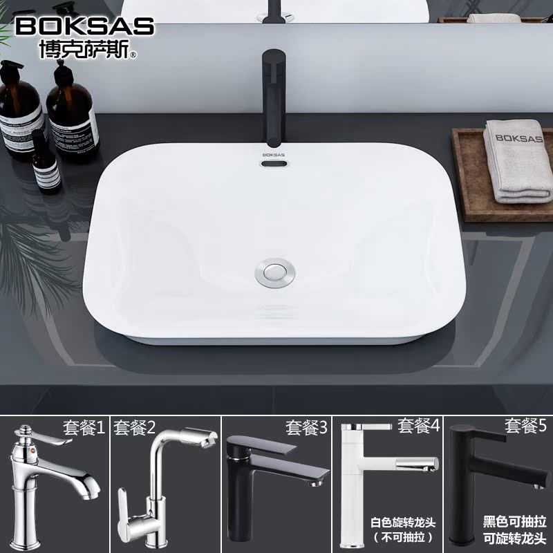 Boxas Square Half Built-in Countertop Central Basin Washbasin Ceramic Countertop Upper Basin Upper Basin Upper Basin Upper Balcony Basin